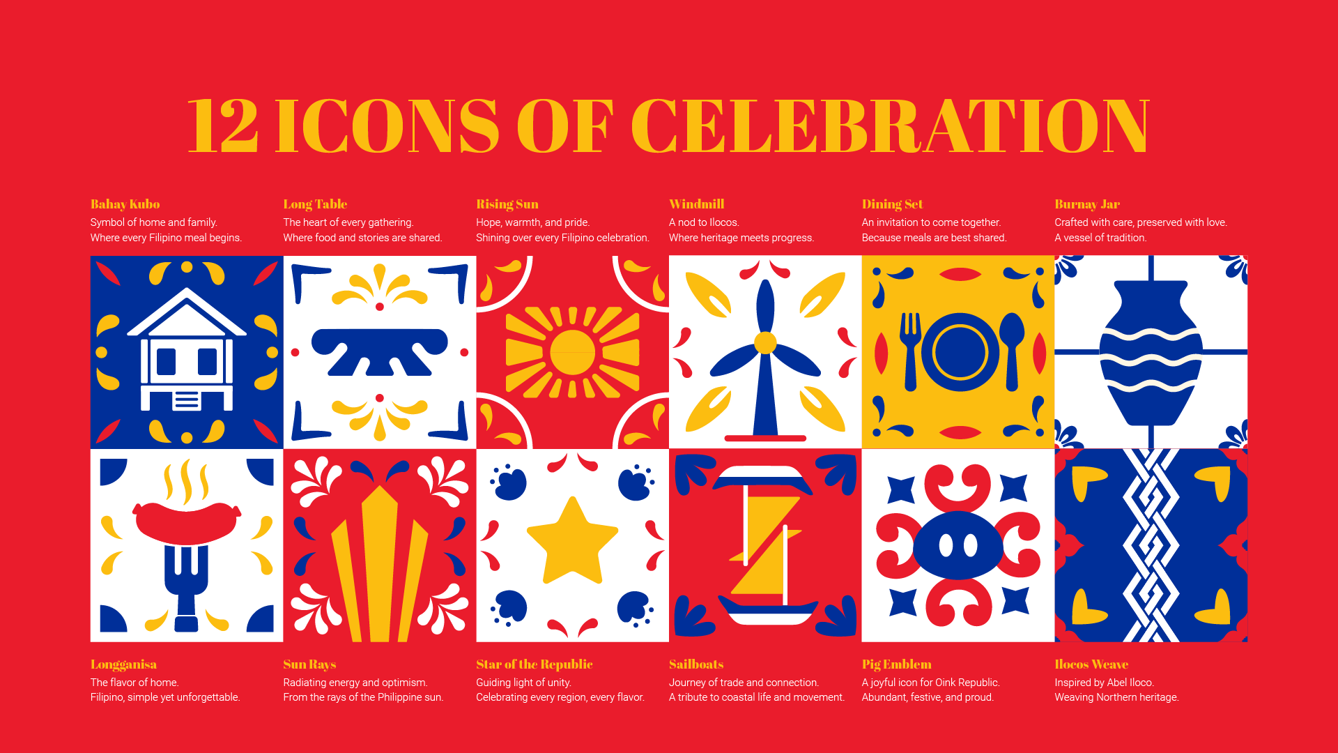 Oink Republic was created to celebrate Filipino culinary pride through a cohesive and scalable visual identity system. Inspired by Ilocos culture, local symbolism, and vibrant fiesta energy, the brand translates tradition into a bold, modern design language. The challenge was to honor heritage without feeling nostalgic or cliché, building a system that feels confident, contemporary, and commercially impactful across packaging, merchandise, and brand touchpoints.